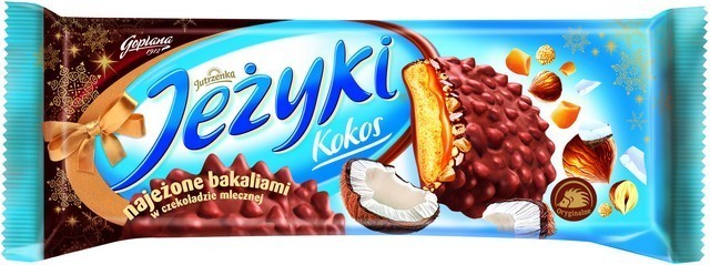 mąka pszenna, cukier, syrop cukru inwertowanego, syrop glukozowy, tłuszcz palmowy, mleko zagęszczone, wiórki kokosowe (3,6%), orzechy laskowe (2,2%), masło (z mleka), chrupki ryżowe 1,4% (zawierają mąkę pszenną i ekstrakt słodu jęczmiennego), substancja utrzymująca wilgoć (syrop sorbitolowy), skrobia, ekstrakt słodowy (z jęczmienia), sól, serwatka w proszku (z mleka), emulgatory (lecytyna sojowa, E 471), substancje spulchniające (E 503, E 500, E 450), aromaty