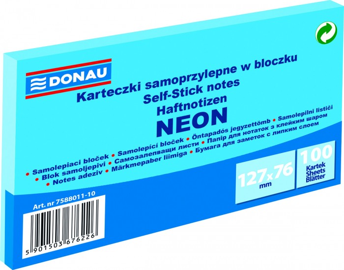 Karteczki samoprzylepne Donau 127 x 76 mm niebieskie neonowe