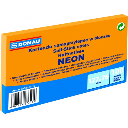 Karteczki samoprzylepne Donau 127 x 76 mm pomarańczowe neonowe