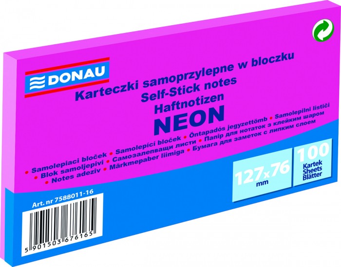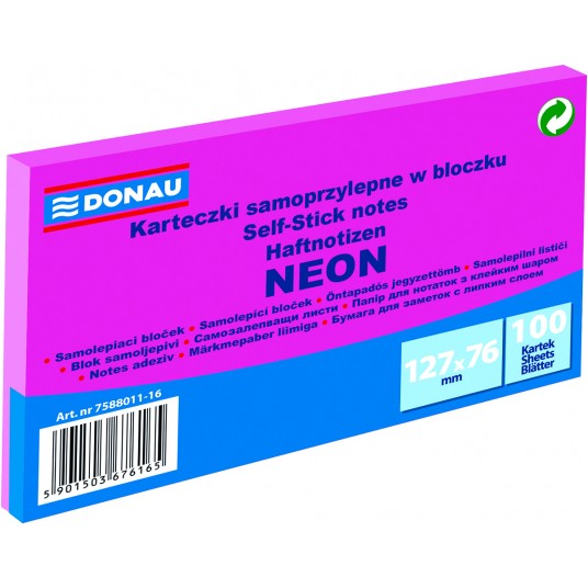 Karteczki samoprzylepne Donau 127 x 76 mm różowe neonowe