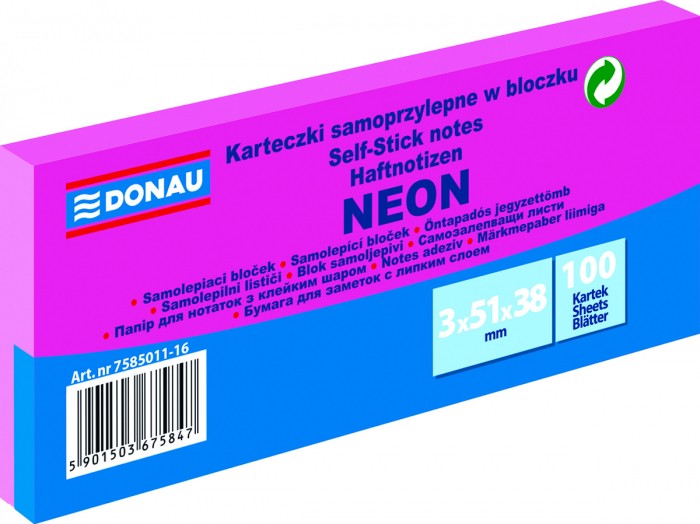 Karteczki samoprzylepne Donau 38 x 51 mm różowe neonowe