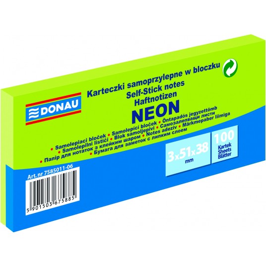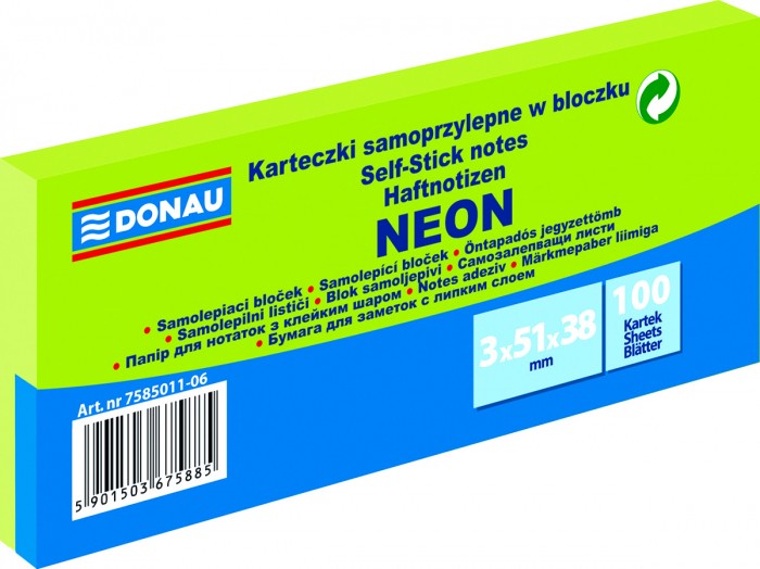 - uniwersalne kolorowe karteczki, idealne do przekazywania wiadomości - gramatura: 70 g/m2 (+/- 4%) - klej umieszczony wzdłuż dłuższego boku - klej usuwalny za pomocą wody - posiadają oznaczenie Zielony Punkt (Der Grüne Punkt) - oznaczające udział w systemie recyklingu i odzysku odpadów wynikający z przepisów prawa polskiego i UE - zabezpieczone folią z charakterystycznym czerwonym paskiem ułatwiającym otwieranie