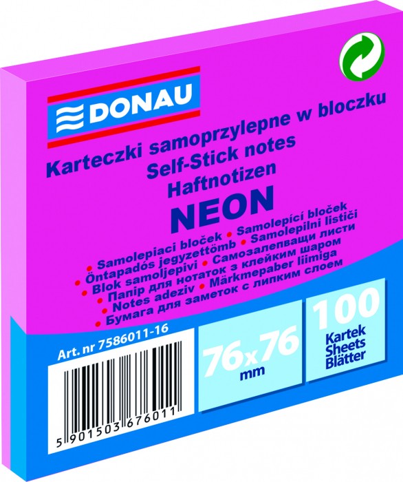 - uniwersalne kolorowe karteczki, idealne do przekazywania wiadomości - gramatura: 70 g/m2 (+/- 4%) - klej umieszczony wzdłuż dłuższego boku - klej usuwalny za pomocą wody - posiadają oznaczenie Zielony Punkt (Der Grüne Punkt) - oznaczające udział w systemie recyklingu i odzysku odpadów wynikający z przepisów prawa polskiego i UE - zabezpieczone folią z charakterystycznym czerwonym paskiem ułatwiającym otwieranie