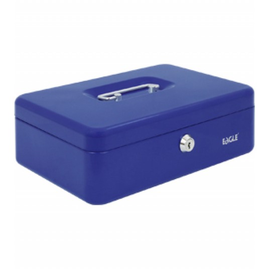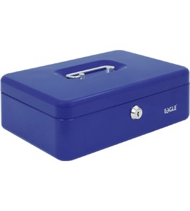 – metalowa kasetka lakierowana, o zaokrąglanych brzegach – zamykana na kluczyk (w zestawie 2 kluczyki) – posiada plastikową tackę z 5 przegródkami – wymiary: 82 x 192 x 262 mm