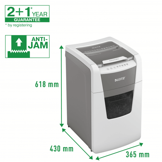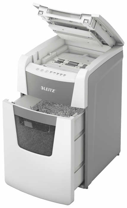 W pełni automatyczna niszczarka do papieru firmy Leitz z unikalną funkcją samooczyszczania.