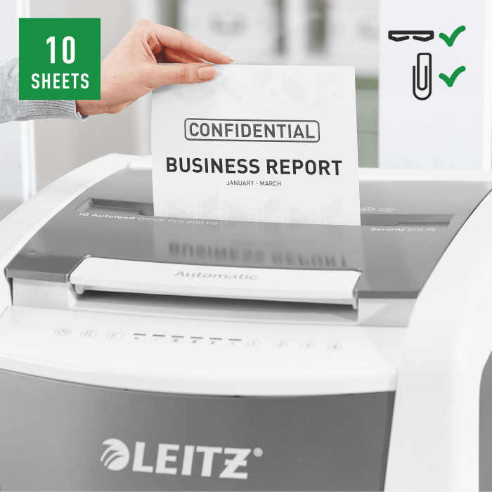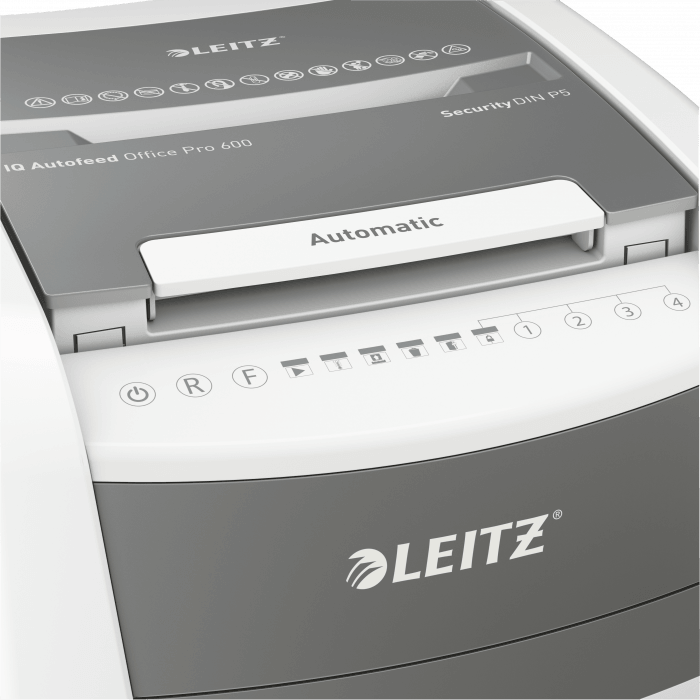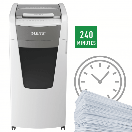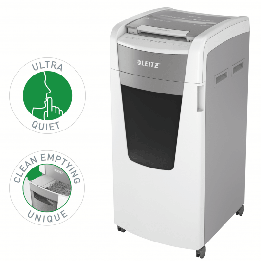 W pełni automatyczna niszczarka do papieru firmy Leitz z unikalną funkcją samooczyszczania.