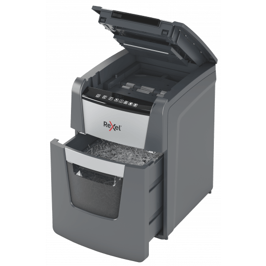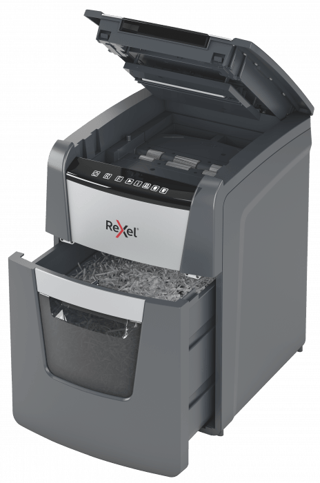 - wyposażona jest w automatyczny podajnik i 34-litrowy pojemnik na ścinki, co sprawia, że idealnie nadaje się do użytku biurowego.