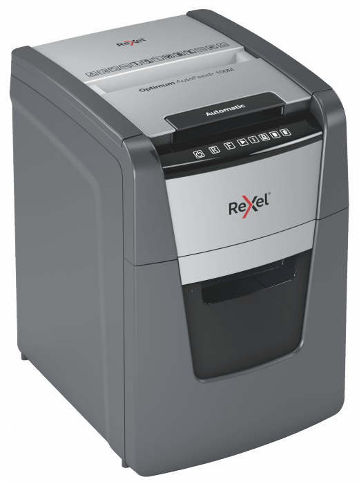 - jednorazowo niszczy automatycznie do 100 kartek A4 (80 gsm), tnąc arkusze na konfetti (o wymiarach 4 x 28 mm), co zapewnia poziom bezpieczeństwa P-4.