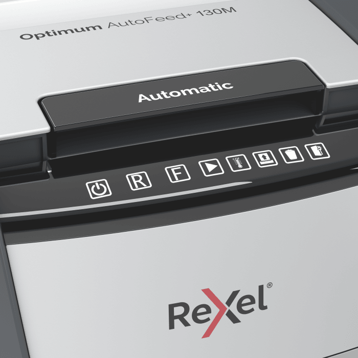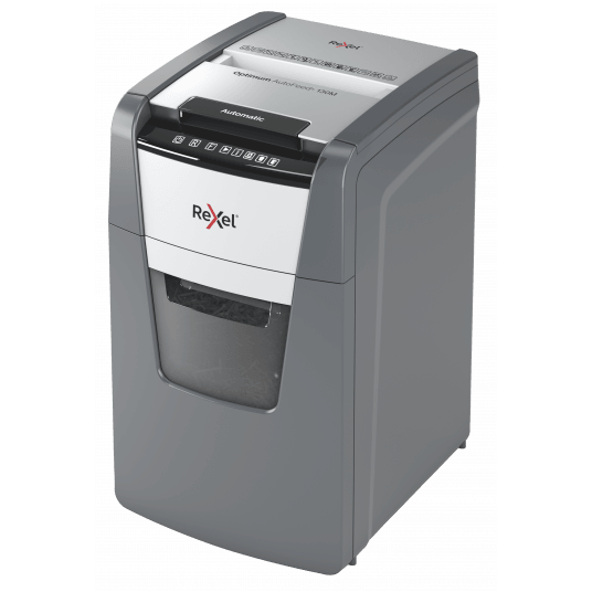 - jednorazowo niszczy automatycznie do 130 kartek A4 (80 gsm), tnąc arkusze na mikrościnki (o wymiarach 2 x 15 mm), co zapewnia poziom bezpieczeństwa P-5