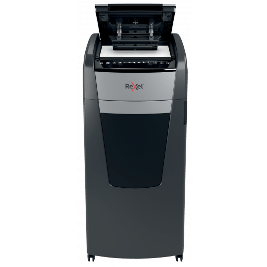 - jednorazowo niszczy automatycznie do 600 kartek A4 (80 gsm), tnąc arkusze na mikrościnki (o wymiarach 2 x 15 mm), co zapewnia poziom bezpieczeństwa P-5