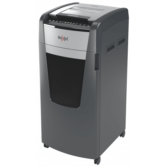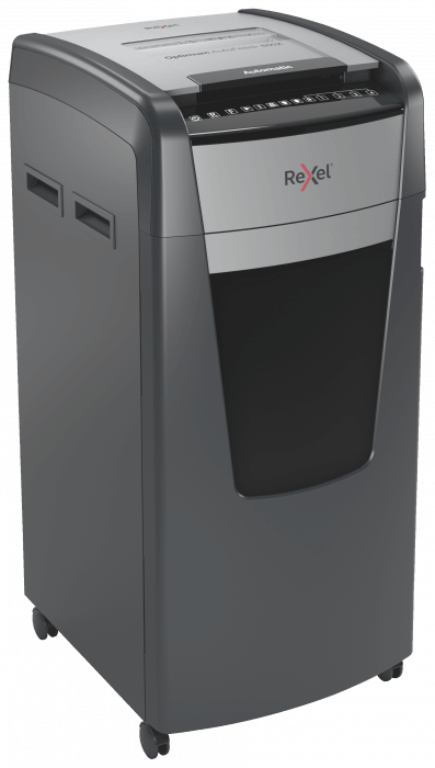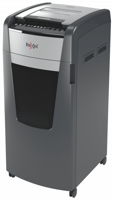 - jednorazowo niszczy automatycznie do 600 kartek A4 (80 gsm), tnąc arkusze na konfetti (o wymiarach 4 x 30 mm), co zapewnia poziom bezpieczeństwa P-4