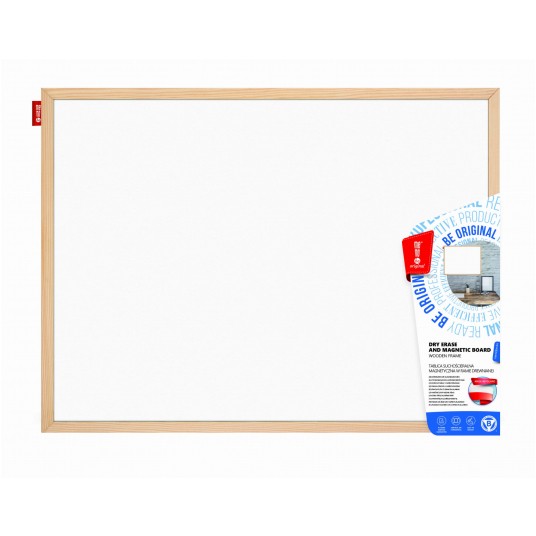 Tablica suchościeralna magnetyczna MemoBe w ramie drewnianej 60 x 40 cm biała