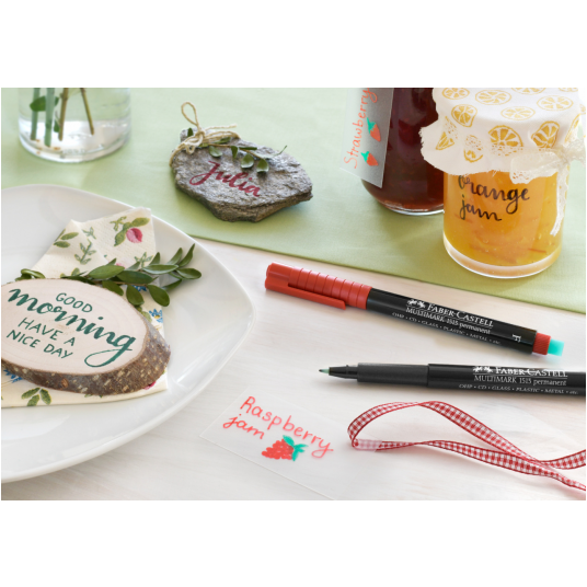 Multimark - wodoodporny, permanentny marker z fibrową końcówką i zintegrowaną specjalną gumką, niezawodny na prawie wszystkich powierzchniach, jak metal, szkło, plastik (PP, PET, PVC itd.), płyty CD/DVD, folie do projektorów.