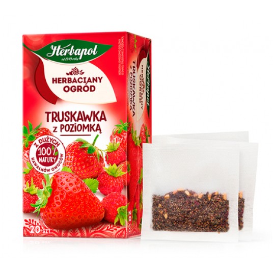 Herbatka owocowo-ziołowa o smaku truskawkowym z poziomką.