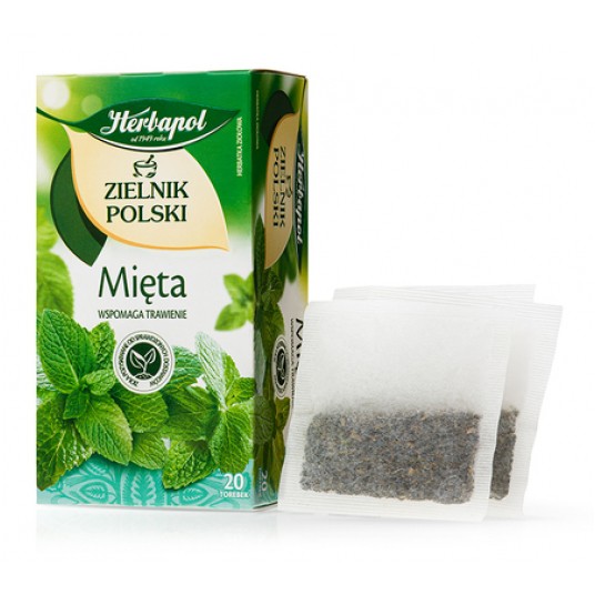 Mięta z serii Zielnik Polski to herbata o 100% zawartości naturalnych ziół. - wspomaga procesy trawienne przyczyniając się do prawidłowego funkcjonowania układu pokarmowego - pomaga w odprężeniu organizmu - skład: 100% liści mięty pieprzowej - zawartość opakowania: 40 g (20 torebek x 2 g).