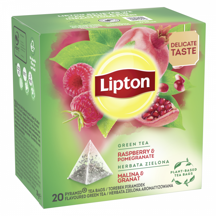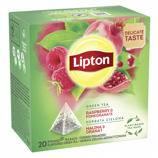 Łagodny smak młodych listków zielonej herbaty, starannie wybranych i suszonych tak, aby pozbawić je goryczy. Teraz w połączeniu z owocowym smakiem słodkich malin i dojrzałego granatu. Oto idealna para, która dzięki torebce piramidce, może w pełni uwolnić całe bogactwo smaku. Rozkoszuj się tym owocowym duetem!