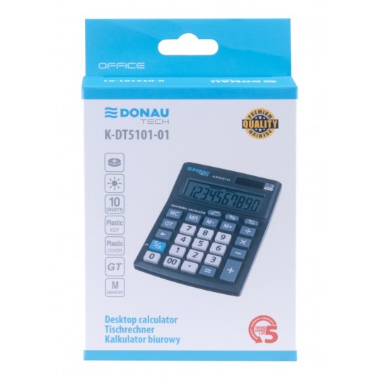 Kalkulator z 10'-cyfrowym wyświetlaczem '-podwójny system zasilania (bateria słoneczna i baterie) '-stały kąt nachylenia wyświetlacza '-wymiar: 137x101x30mm '-funkcja pierwiastka kwadratowego oraz obliczania procentów '-fukcja pamięci '-przycisk GT (sumy