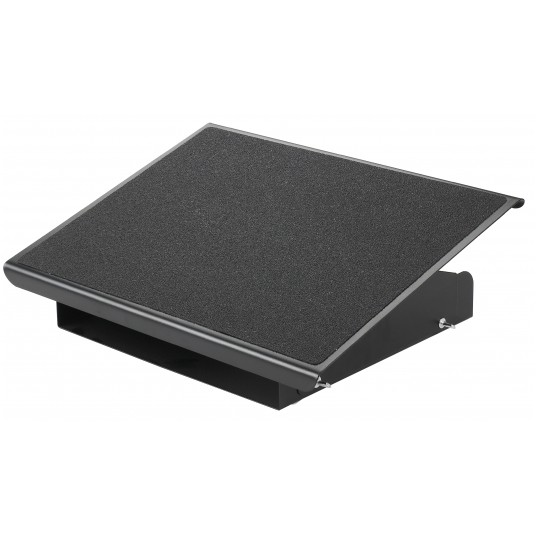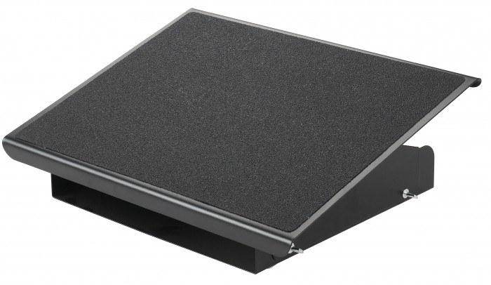 Metalowy podnóżek o ergonomicznej konstrukcji z matą antypoślizgową. - pochyla się pod kątem 0-20° - możliwość ustawienia na 3 różnych wysokościach - wymiary platformy: 41,5 x 32,6 cm