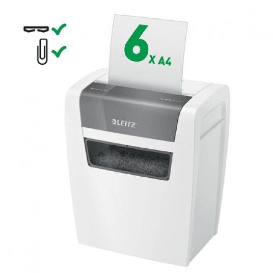- niezwykle cicha praca urządzenia - gwarantuje niezakłócony spokój w miejscu pracy (pod warunkiem regularnego stosowania arkuszy Leitz do oliwienia ostrzy)