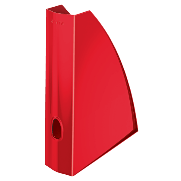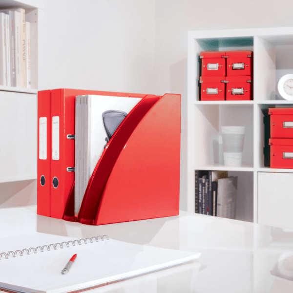 Pojemnik na czasopisma do przechowywania czasopism i różnego rodzaju katalogów - szerokość 6 cm. - niezwykle mocny i wytrzymały - z otworem na grzbiecie ułatwiającym wyjmowanie - wymiary: 75 x 312 x 258 mm - kolor: czerwony metaliczny.