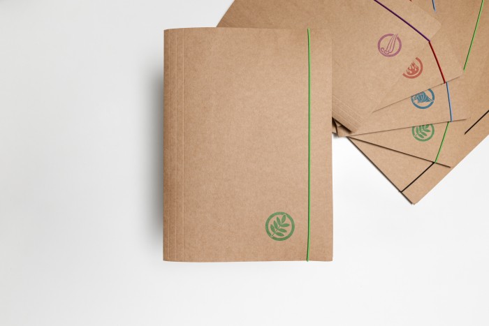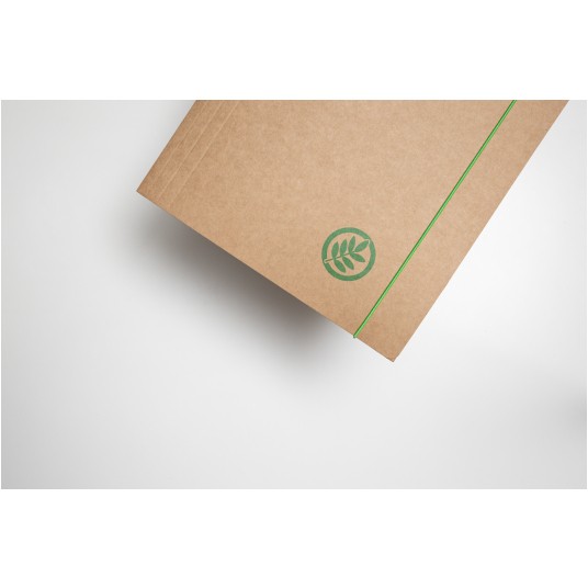 Teczka z gumką wykonana z ekologicznej jasno brązowej tektury typu Kraft podlegającej 100% recyklingowi. - dostępna w gramaturze 300g - wyposażona w gumkę w kolorze druku - posiada trzy wewnętrzne klapki zabezpieczające dokumenty przed wypadnięciem - format A4+ - okładka z motywem graficznym: ziemia