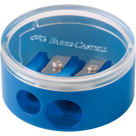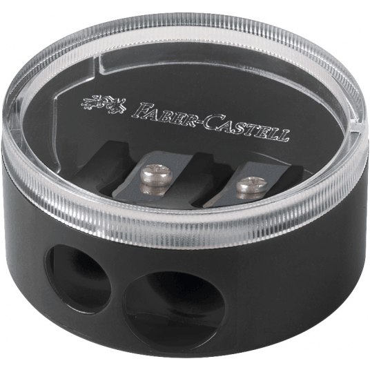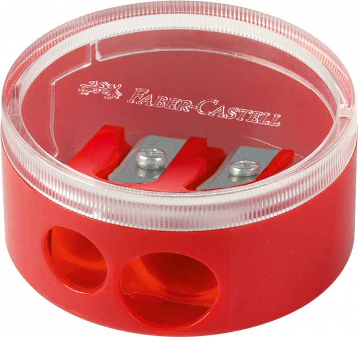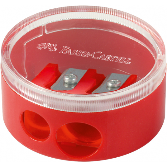 Temperówka podwójna Faber-Castell z pojemnikiem na ostrużyny. - w kolorze czarnym, czerwonym i niebieskim - idealna do szkoły i biura - przeznaczona do klasycznych i trójkątnych kredek i ołówków w standardowym rozmiarze i Jumbo - ze śrubką zabezpieczającą.