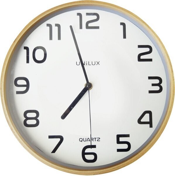Zegar ścienny o prostym designie, w neutralnym kolorze. - skandynawski styl - połączenie drewna i koloru - cyfry kontrastujące z tarczą zapewniają doskonałą czytelność - nawet z 35 m - cichy mechanizm i bezszelestna praca wskazówek - precyzyjny i niezawodny system zegarowy Quartz - praktycznie brak odchyleń w ciagu całego czasu użytkowania - z tyłu uchwyt do zawieszenia na ścianie - szklana tarcza, kontur wykonany z drewna bukowego - zasilany baterią AA - w zestawie - gwarancja 2 lata