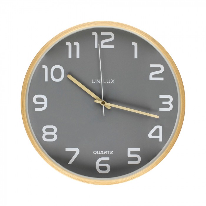Zegar ścienny o prostym designie, w neutralnym kolorze. - skandynawski styl - połączenie drewna i koloru - cyfry kontrastujące z tarczą zapewniają doskonałą czytelność - nawet z 35 m - cichy mechanizm i bezszelestna praca wskazówek - precyzyjny i niezawodny system zegarowy Quartz - praktycznie brak odchyleń w ciągu całego czasu użytkowania - z tyłu uchwyt do zawieszenia na ścianie - szklana tarcza, kontur wykonany z drewna bukowego - zasilany baterią AA - w zestawie - gwarancja 2 lata