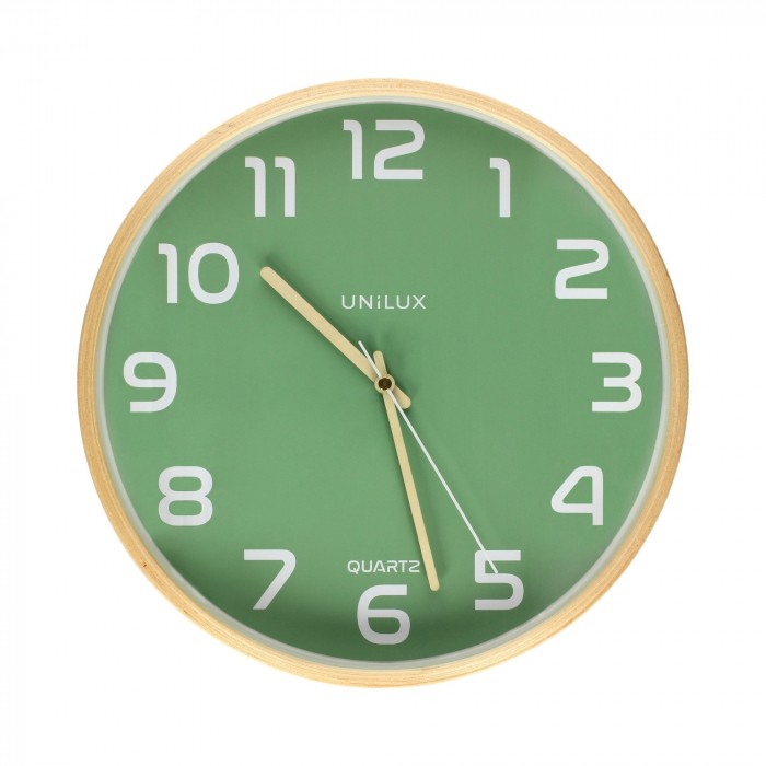 Zegar ścienny o prostym designie, w neutralnym kolorze. - skandynawski styl - połączenie drewna i koloru - cyfry kontrastujące z tarczą zapewniają doskonałą czytelność - nawet z 35 m - cichy mechanizm i bezszelestna praca wskazówek - precyzyjny i niezawodny system zegarowy Quartz - praktycznie brak odchyleń w ciągu całego czasu użytkowania - z tyłu uchwyt do zawieszenia na ścianie - szklana tarcza, kontur wykonany z drewna bukowego - zasilany baterią AA - w zestawie - gwarancja 2 lata