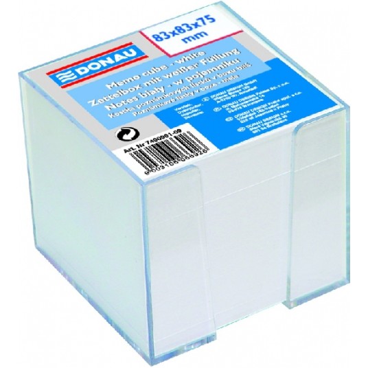 Kostka nieklejona w pojemniku Donau 83 x 83 x 75 mm biała