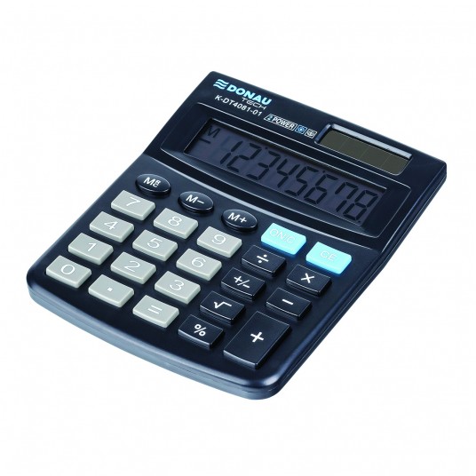 - kalkulator z 8-cyfrowym wyświetlaczem z zasilaniem bateryjno-solarnym