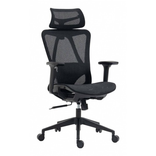 ergonomiczny, obrotowy fotel biurowy z wysokiej jakości siatką na siedzisku, oparciu i zagłówku