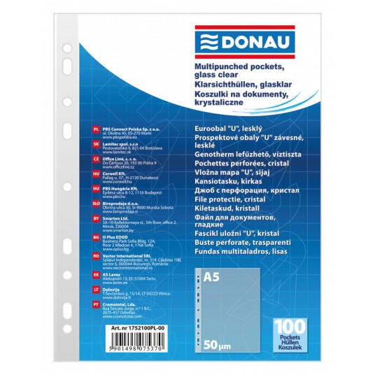 Koszulki na dokumenty DONAU PP krystal. A5 50mic.