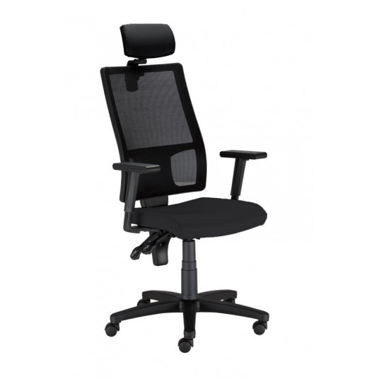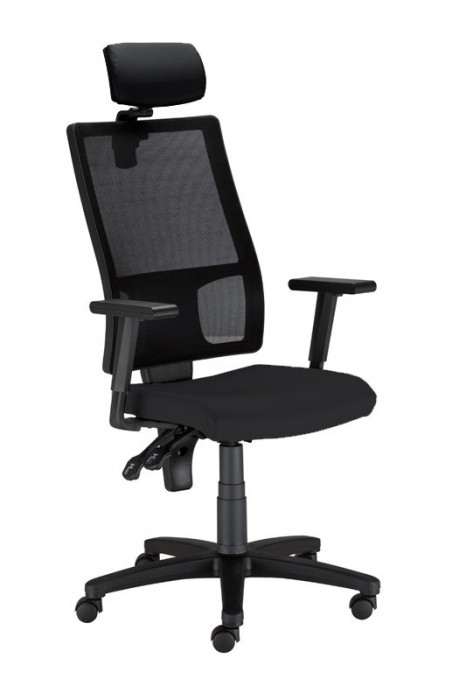 • Regulowany zagłówek. Szkielet wykonany jest z polipropylenu [PP], pokrytego pianką wylewaną, tapicerowana tylko z jednej strony. Regulacja wysokości w zakresie 50 mm i regulacja nachylenia. Element podtrzymujący zagłówek wykonany jest z poliamidu wzmocnioengo włóknem szklanym [PA+GF].