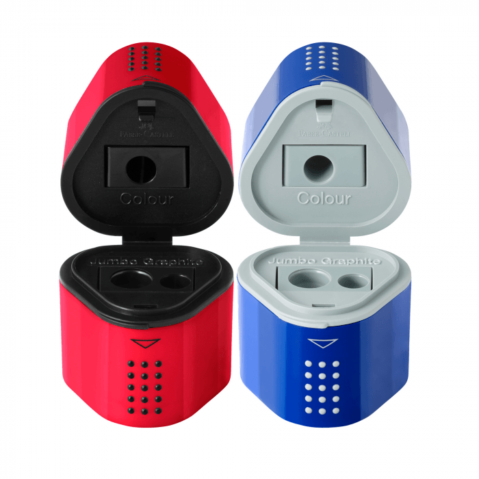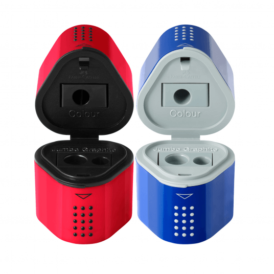 temperówka do ołówków standardowych, grubych typu jumbo oraz kredek o średnicy 8 i 11 mm odpowiednia do temperowania każdego kształtu ołówka / kredki posiada pojemnik na ostrużyny po obu stronach wyposażona w specjalną, miękką strefę uchwytu GRIP