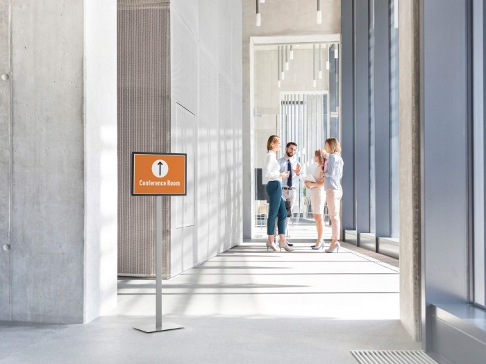 - dwustronny stojak podłogowy nadaje się zarówno do prezentacji informacji, jak również jako system oszyldowania wskazujący np. drogę