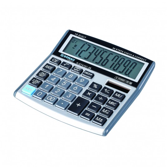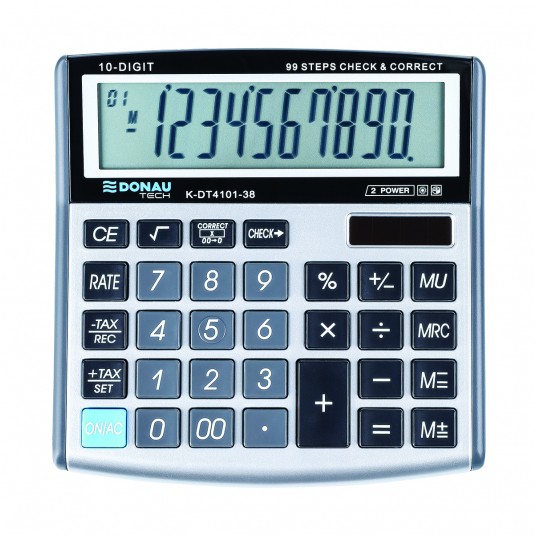 - kalkulator z 10-cyfrowym wyświetlaczem z zasilaniem bateryjno-solarnym - wymiary: 136 x 134 x 28 mm - posiada funkcję pierwiastka kwadratowego oraz obliczania procentów, obliczanie marży MU, obliczenia podatkowe TAX+ TAX- , sprawdź i popraw CHECK & CORRECT, podwójne zero - możliwość kasowania ostatniej pozycji, pamięć - wyłącza się automatycznie - 5 lat gwarancji - kolor srebrny