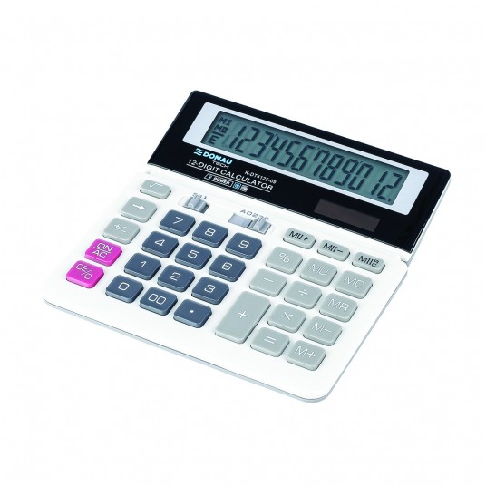 - kalkulator z 12-cyfrowym wyświetlaczem z zasilaniem bateryjno-solarnym