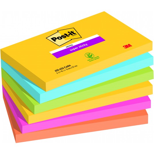 Kolorowe karteczki samoprzylepne Post-it® Super Sticky to innowacyjne rozwiązanie na codzienne zarządzanie zadaniami i priorytetami. Dzięki kolorom świetnie się wyróżniają, dzięki Super Sticky trzymają się w każdym miejscu.