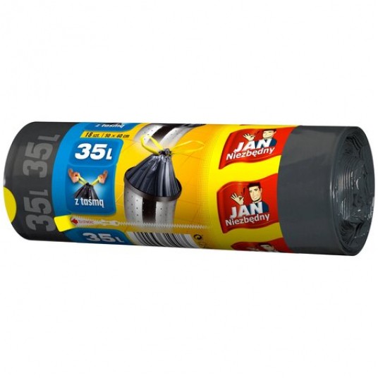 Worki na śmieci Jana Niezbędnego dostępne są w dwóch wariantach pojemności: 35l (50 cm x 60cm, 18 sztuk na rolce), oraz 60l (60 cm x 72cm, 12 sztuk na rolce).
