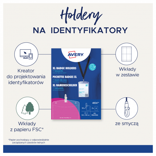 • Darmowe i proste oprogramowanie do projektowania identyfikatorów dostępne na: avery-zweckform.pl/oprogramowanie