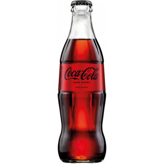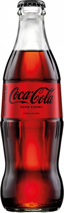 Coca-Cola Zero cukru ZERO kalorii idealna dla osób, które nie chcąc zrezygnować z pełnego smaku Coca-Coli i poszukują alternatywy w postaci napoju bez cukru to doskonałe rozwiązanie dla wszystkich dbających o linię - zawiera mało kalorii pakowany w szklaną butelkę o pojemności 0,33 litra *butelka bezzwrotna