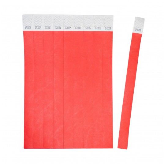 • Czerwone neonowe opaski na rękę, w rozmiarze 256 x 19 mm.
