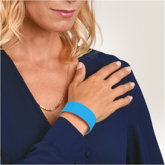 • Niebieskie neonowe opaski na rękę, w rozmiarze 256 x 19 mm.