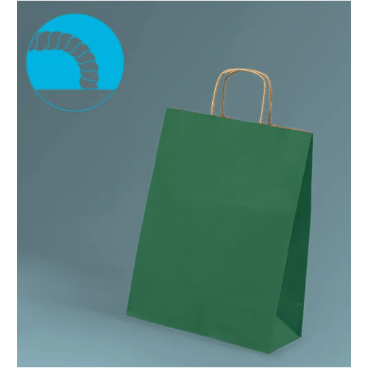 Torba papierowa z uchwytem skręcanym Papier: Brązowy gładki Uchwyt: Brązowy Gramatura: 90 g Pojemność: 7,7 Litra Rozmiar: 240x100x320 mm Cechy: Brąz Recykling