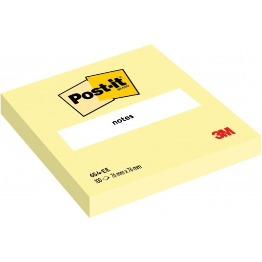 Opakowanie zawiera 100 karteczek w oryginalnym kanarkowo żółtym kolorze w rozmiarze 76 x 76 mm.