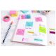 Korzystaj z różnych kolorów i rozmiarów do tworzenia własnej hierarchii ważności zadań lub kodowania zagadnień. Karteczki z klasycznym klejem Post-it® są idealne, gdy przyklejasz je do papieru - trzymają się mocno i odklejają bez śladu. Świetne do ważnych dokumentów, zdjęć, gazet, katalogów i innych delikatnych papierowych powierzchni. Grubszy papier w 100% z pulpy drzewnej, po którym wygodnie jest pisać m.in. długopisem, ołówkiem, cienkopisem, piórem.