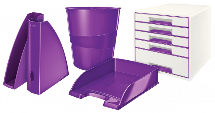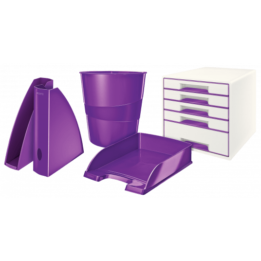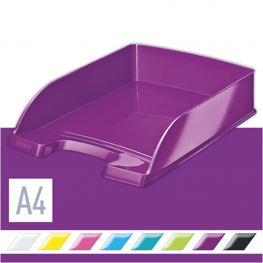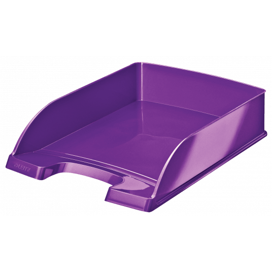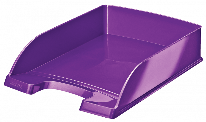Najwyższej jakości stylowa półka na dokumenty w niezwykłych, przykuwających wzrok kolorach, z efektownym błyszczącym wykończeniem. - najtrwalsza półka w swojej klasie, mocna i wytrzymała - wyższe ścianki boczne gwarantują większą od przeciętnej pojemność - ułatwia organizację dokumentów dzięki możliwości ustawiania półek schodkowo lub pionowo jednej na drugiej - łatwy dostęp do dokumentów dzięki szerokiemu wycięciu z przodu - kolor: fioletowy metaliczny.