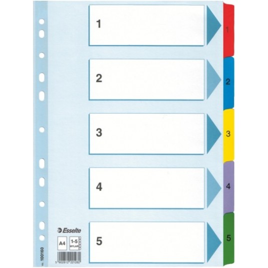 Przekładki kartonowe Esselte Mylar A4 numeryczne 1 - 5
