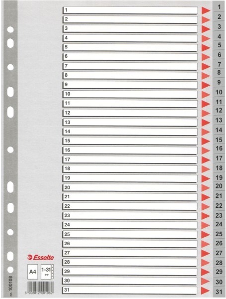 Przekładki plastikowe Esselte PP A4 numeryczne 1 - 31